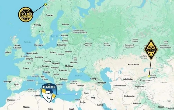 本届欧冠附加赛上,来自哈萨克斯坦的阿拉木图凯拉特、挪威的博德闪耀和塞浦路斯的帕福斯分别出局 了苏超凯尔特人、奥地利的格拉茨风暴和塞尔维亚的贝尔格莱德红星晋级下一轮 正式比赛。这三支球队,恰好来自欧冠版图的最东面、北面和南面。在打完皇马后,阿拉木图凯拉特和帕福斯会有一场直面对话,让塞浦路斯球迷感受 一把天南地北的奔波之苦。