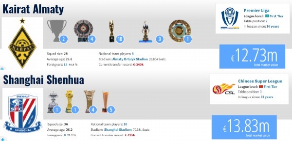 不过需要特别说明的是,阿拉木图凯拉特的主场作战 其实是在亚洲。阿拉木图是哈萨克斯坦之前的首都,直到1997年他们选择迁都阿斯塔纳。不过尽管如此,阿拉木图依旧是哈萨克斯坦国内最大的城市。