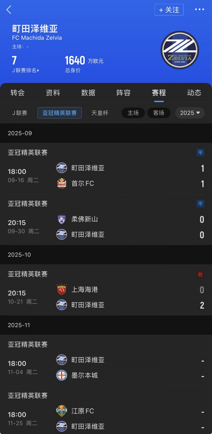 亚冠前两战町田泽维亚分别战平了首尔FC和柔佛新山,今天是他们的首场获胜 。