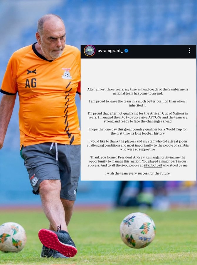 10月29日讯 格兰特社媒发文确认,他将不再担任赞比亚主帅。