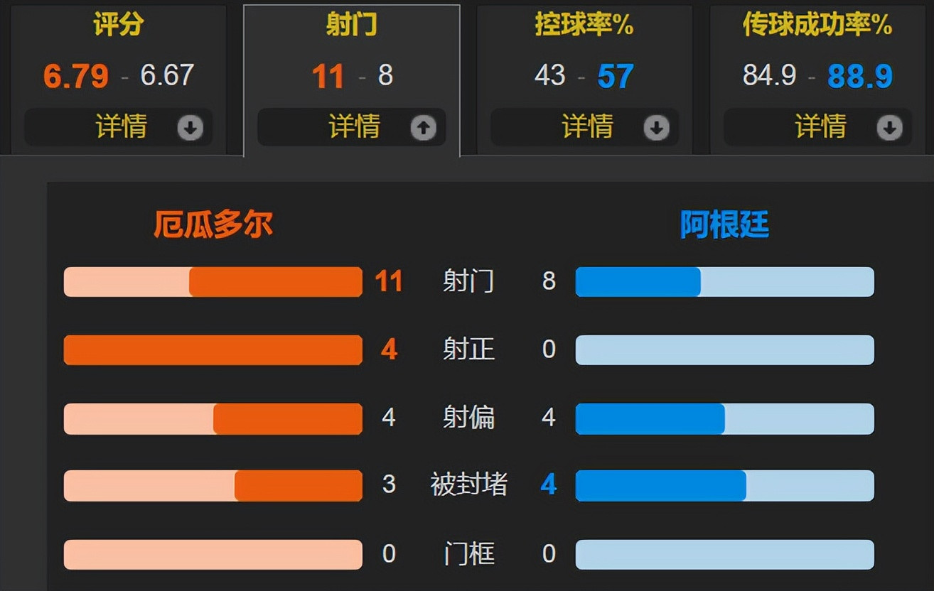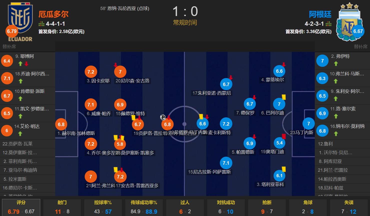 全场赛事 ,阿根廷的盘带时间 为57%体育赛事直播免费网站,一共有8次射球 ,但0次射正;厄瓜多尔一共有11次射球 ,其中4次射正。阿根廷此役落败,再一次证明2026世界杯赛 梅西是不可或缺的,阿根廷攻击 需要梅西的冲破 和犀利直塞。