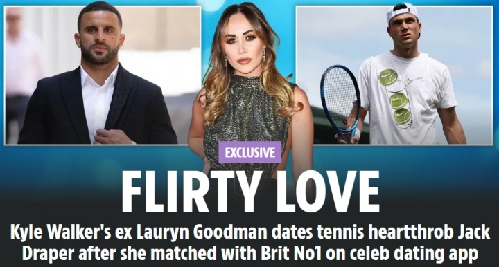 10月05日讯 太阳报独家报道,凯尔-沃克之前的情人劳伦-古德曼(34岁)与英国网球运动活动 球员德雷珀(23岁)约会。