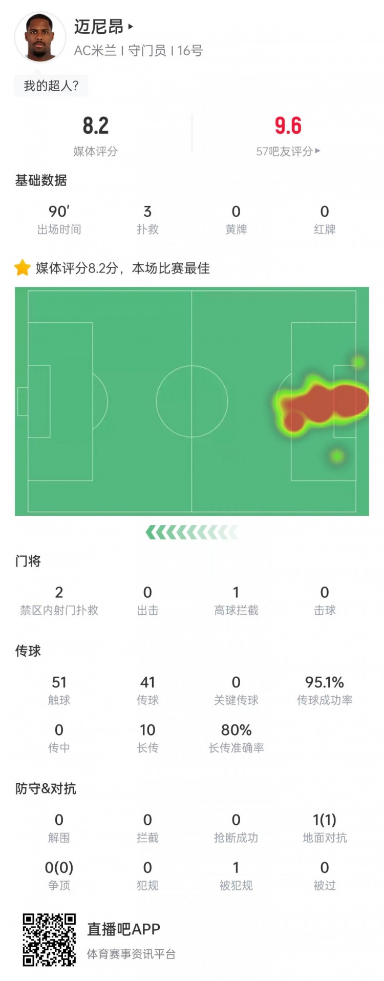 3次抢救 +零封!迈尼昂当选米兰vs尤文全场最佳球员