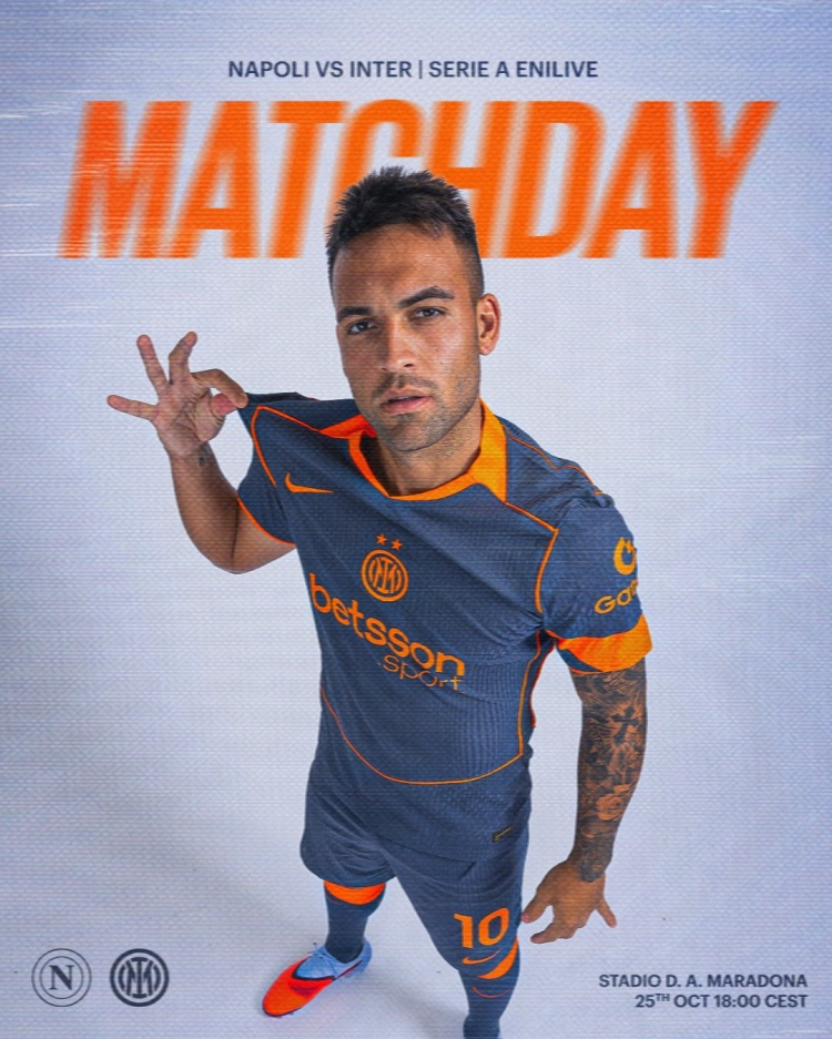 国米官方社媒发布了此役的海报,队内前场球员劳塔罗单人出镜。